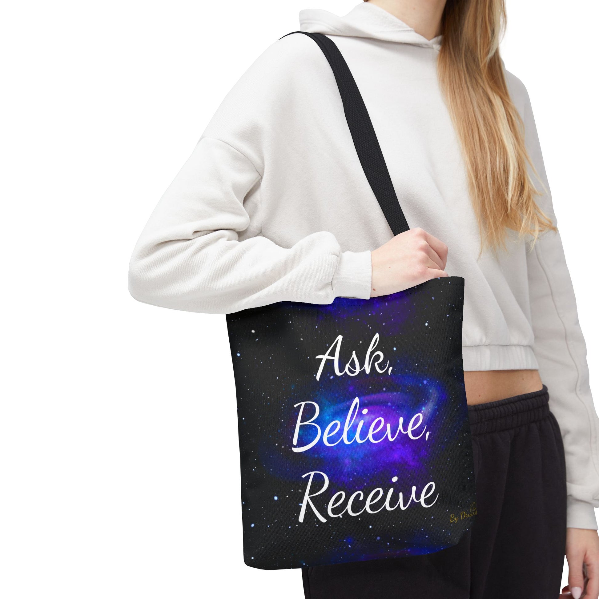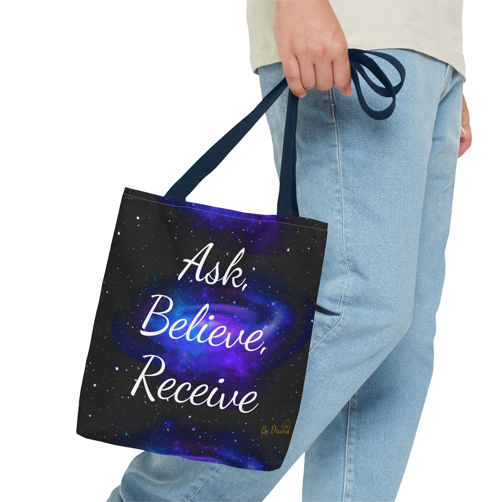 Ask Believe Receive Tote Bag – Manifestation Galaxy Shopper by Druvs