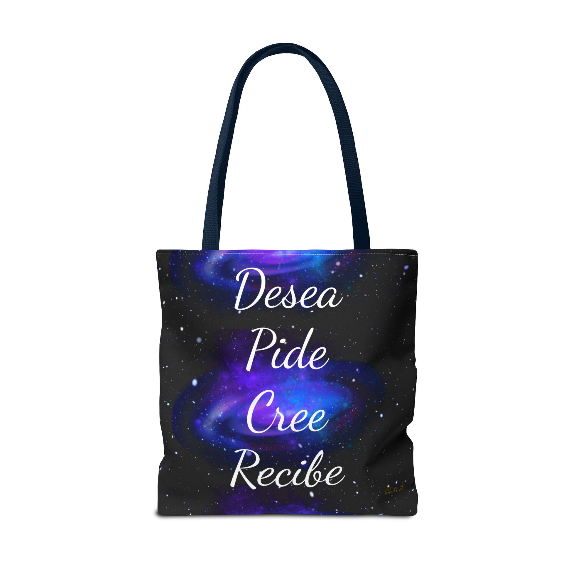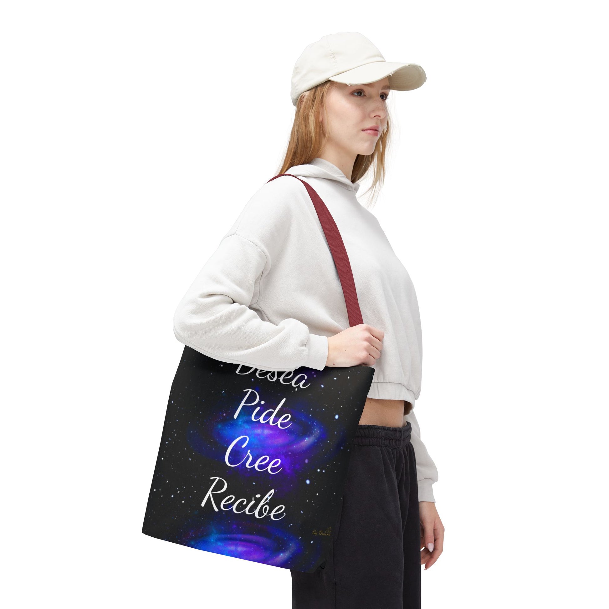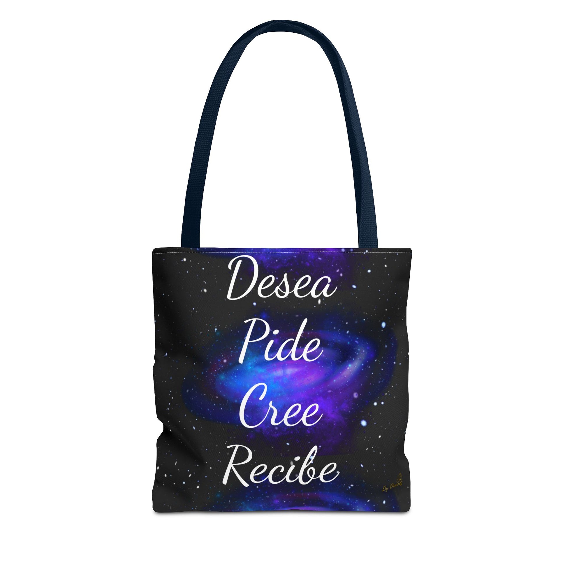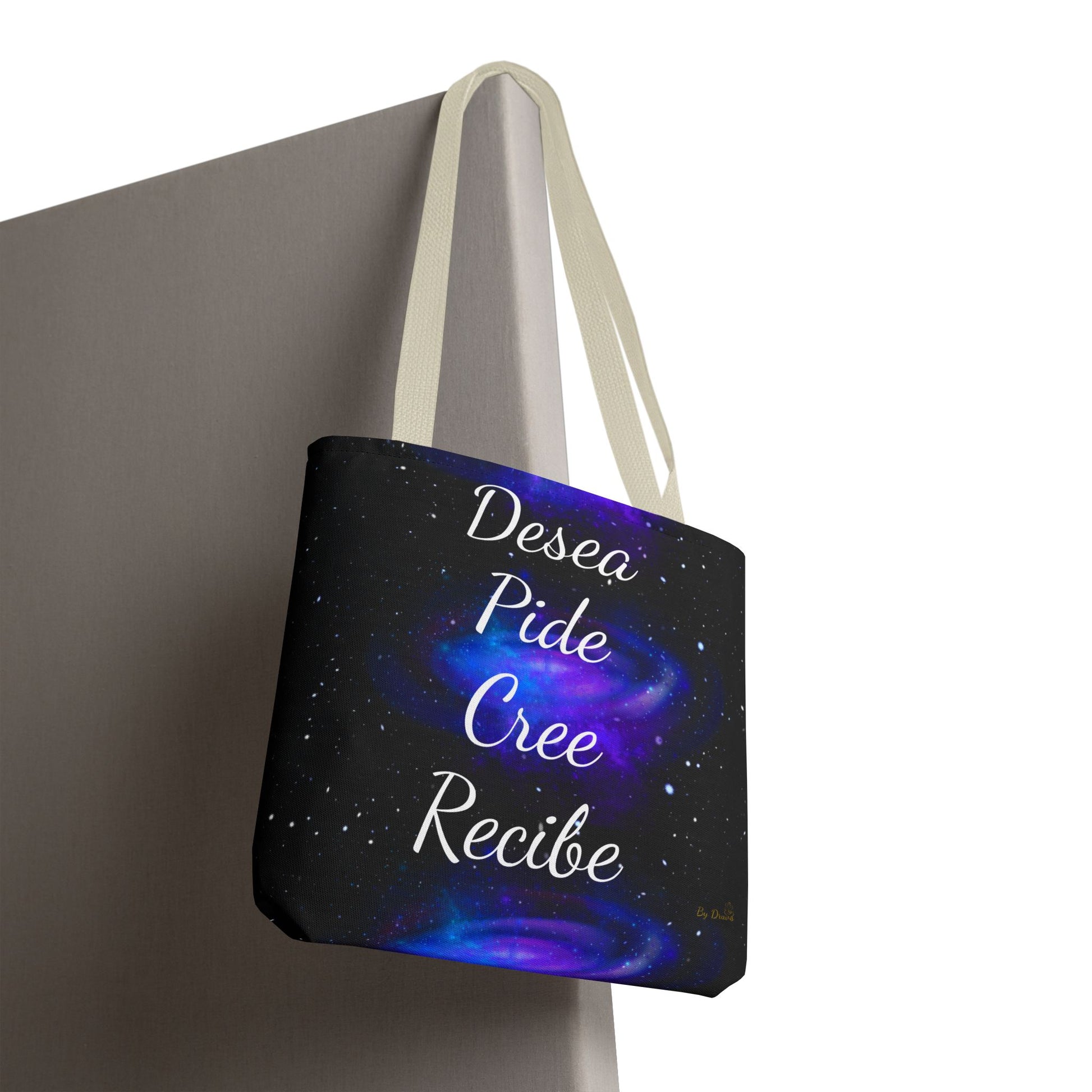 Desea Pide Cree Recibe Tote Bag – Bolsa Cósmica de Afirmaciones Espirituales por Druvs