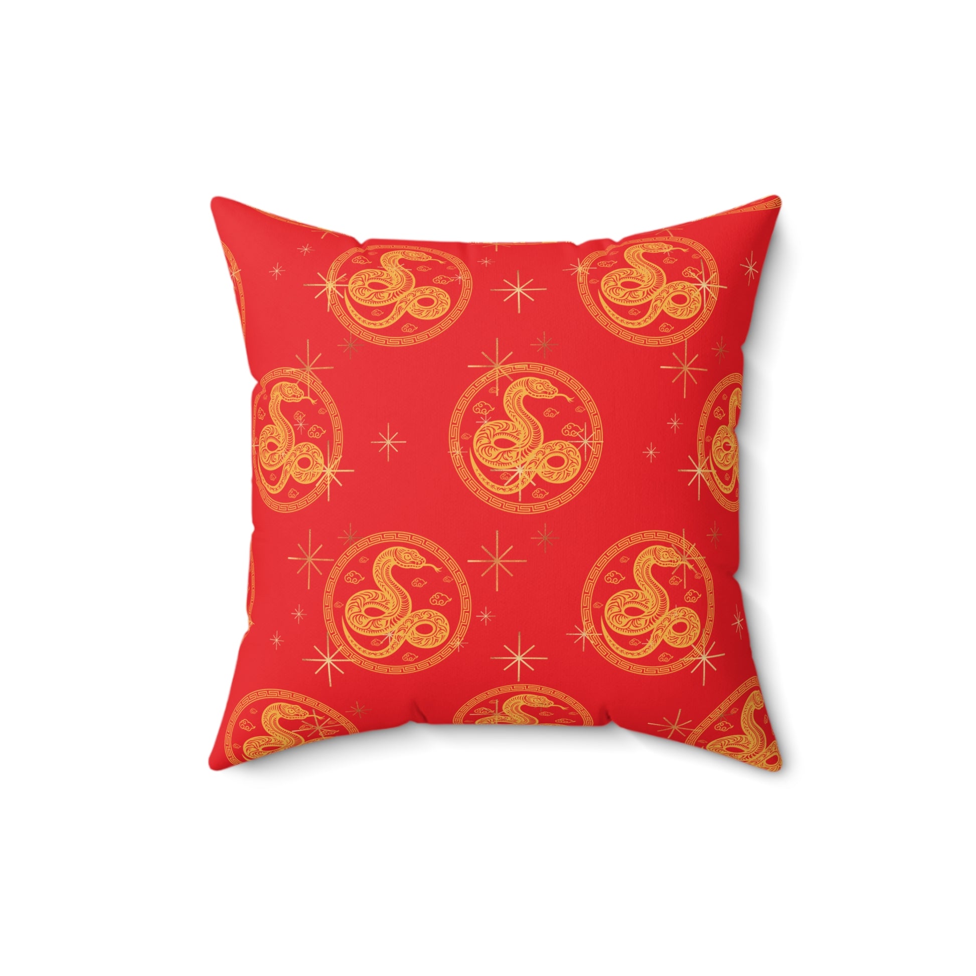 Celebrate the Year of the Snake (2025) with this festive Chinese New Year Pillow, featuring a striking gold snake medallion pattern on a bold red background — symbolizing prosperity, transformation, and new beginnings.