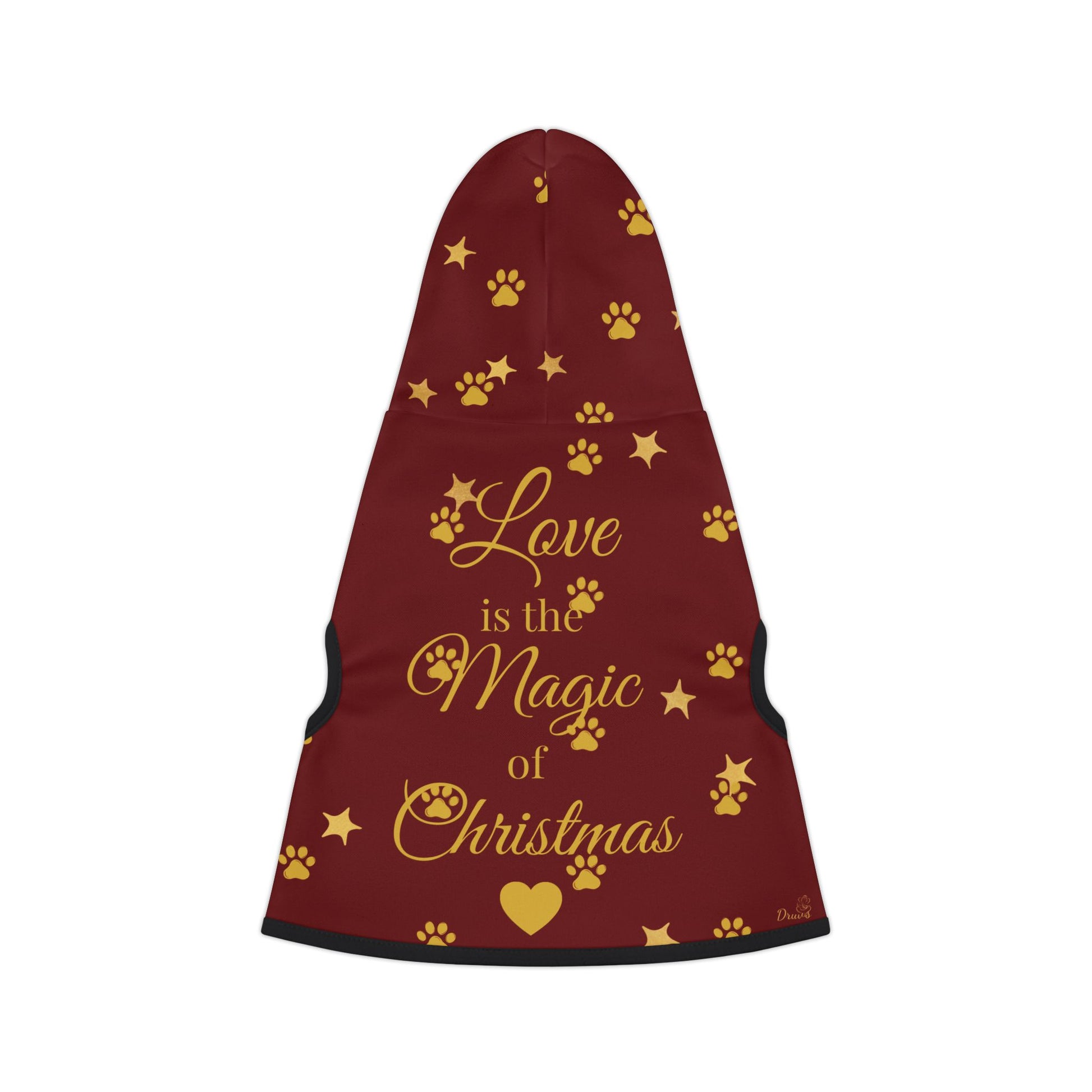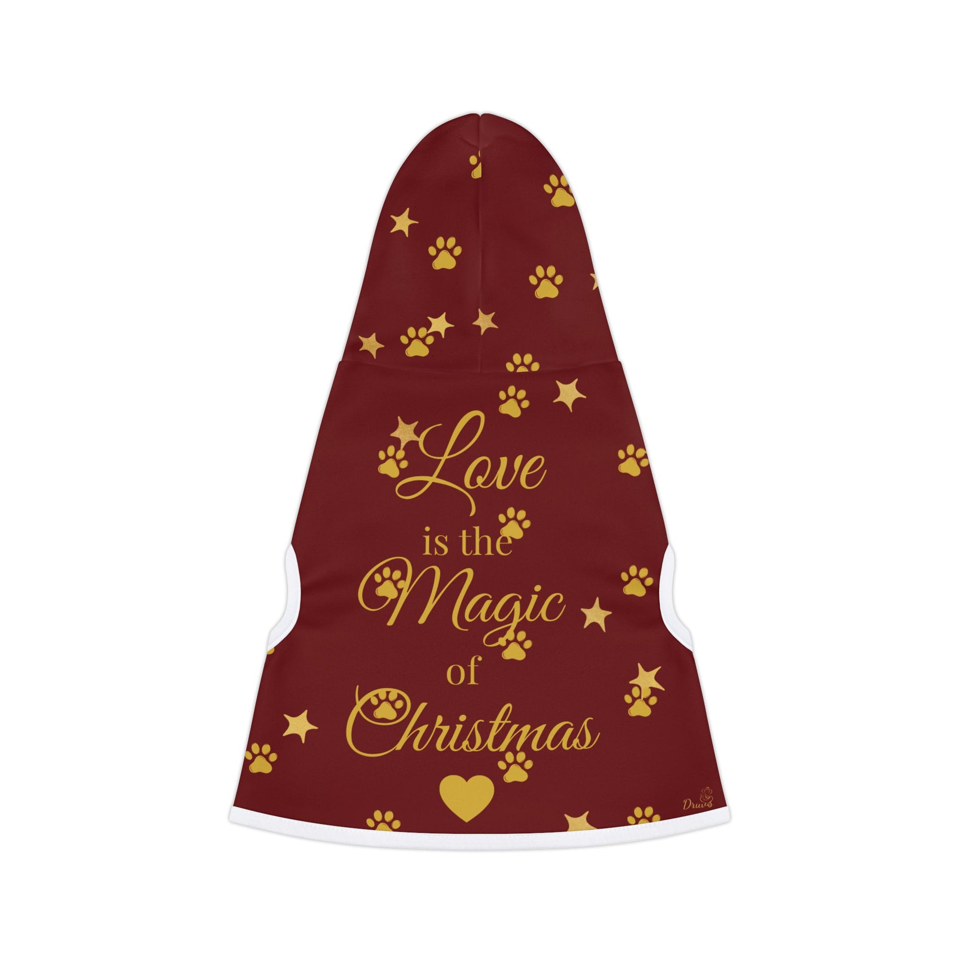 Love is the Magic of Christmas – Festive Pet Hoodie with Paws & Stars Print