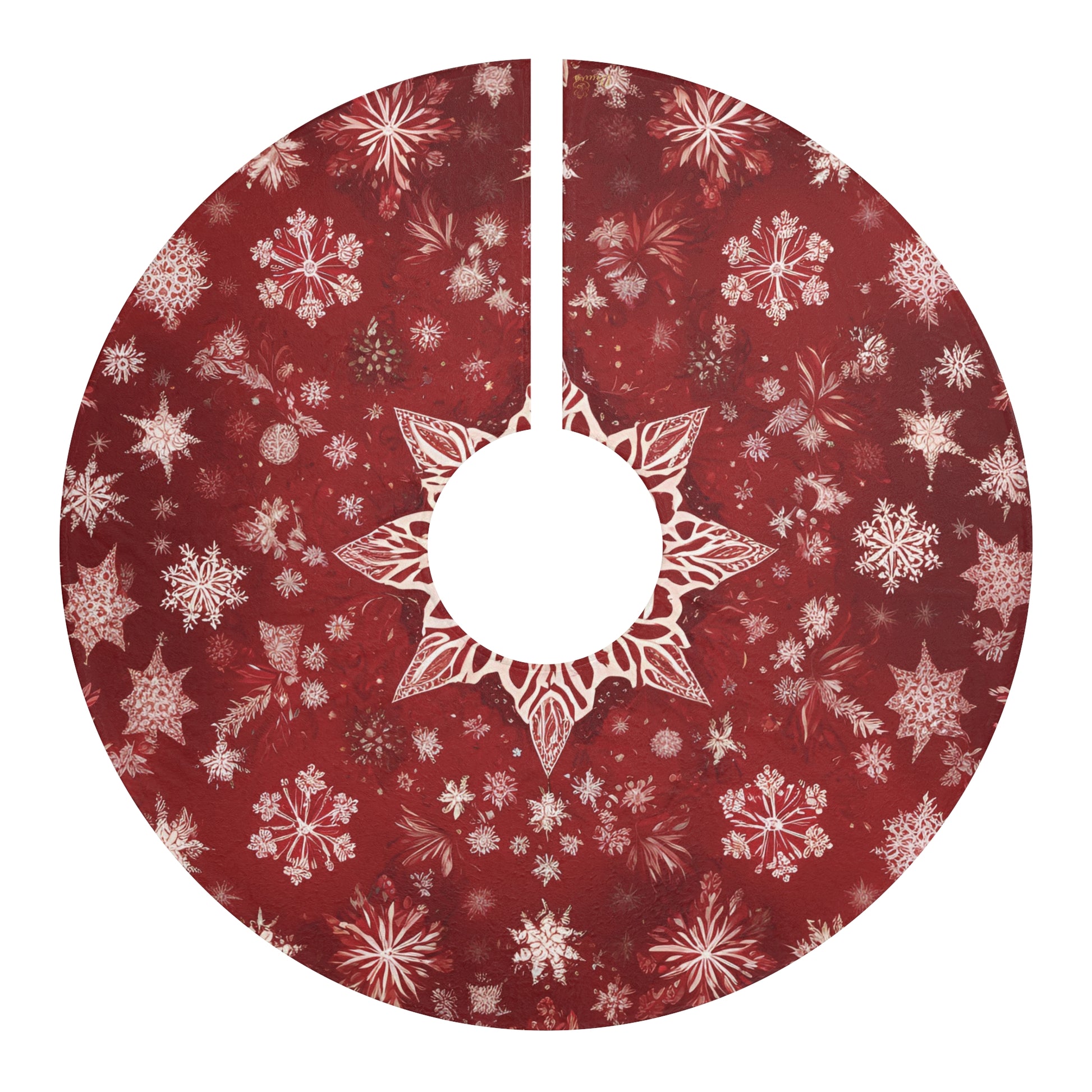 Add a luxurious, cozy charm to your Christmas décor with this Elegant Snowflake Tree Skirt in deep festive red. Designed with delicate snowflakes, starbursts, and intricate mandala-style center, it creates a timeless holiday aesthetic under your tree.