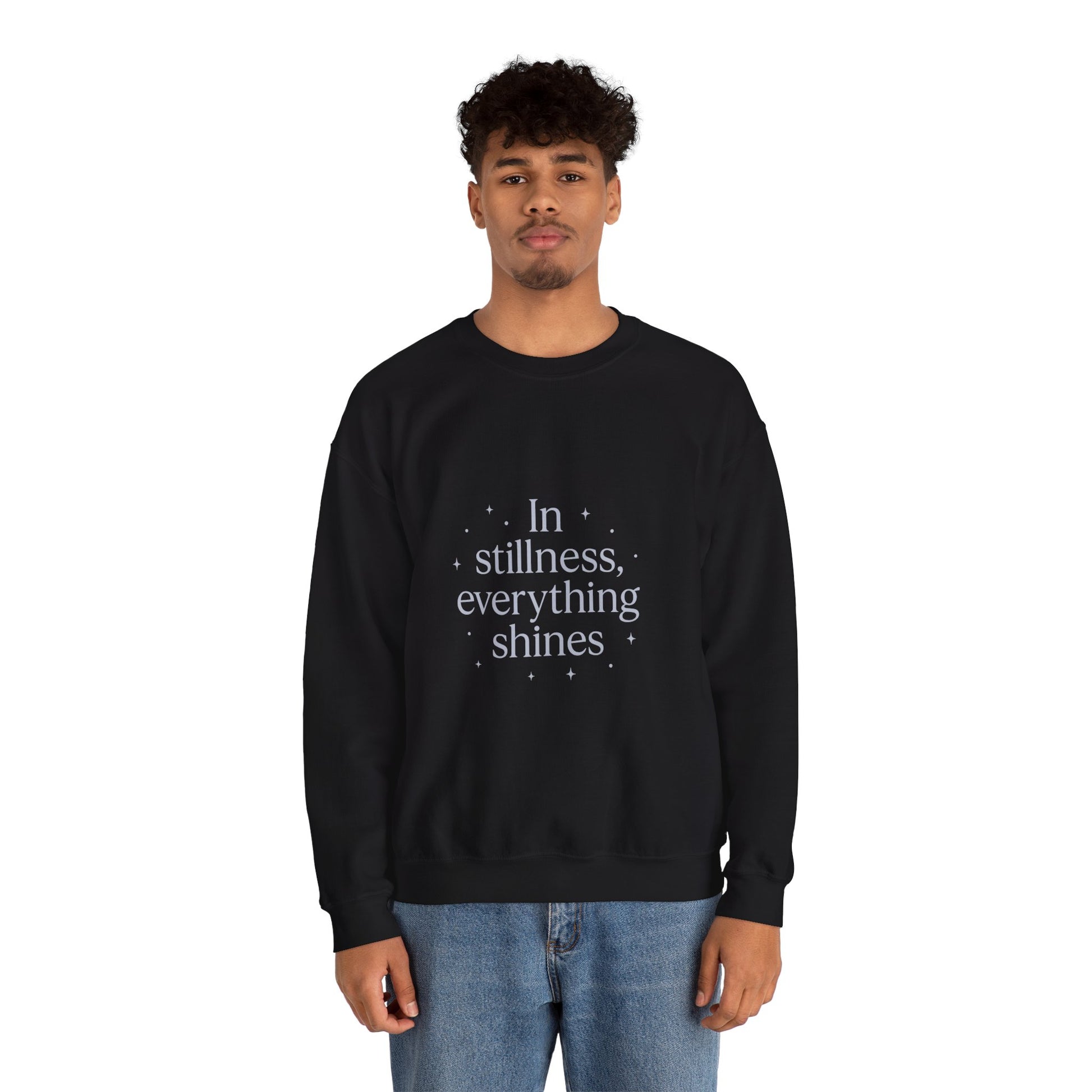 In Stillness, Everything Shines – Minimalist Winter Quote Sweatshirt