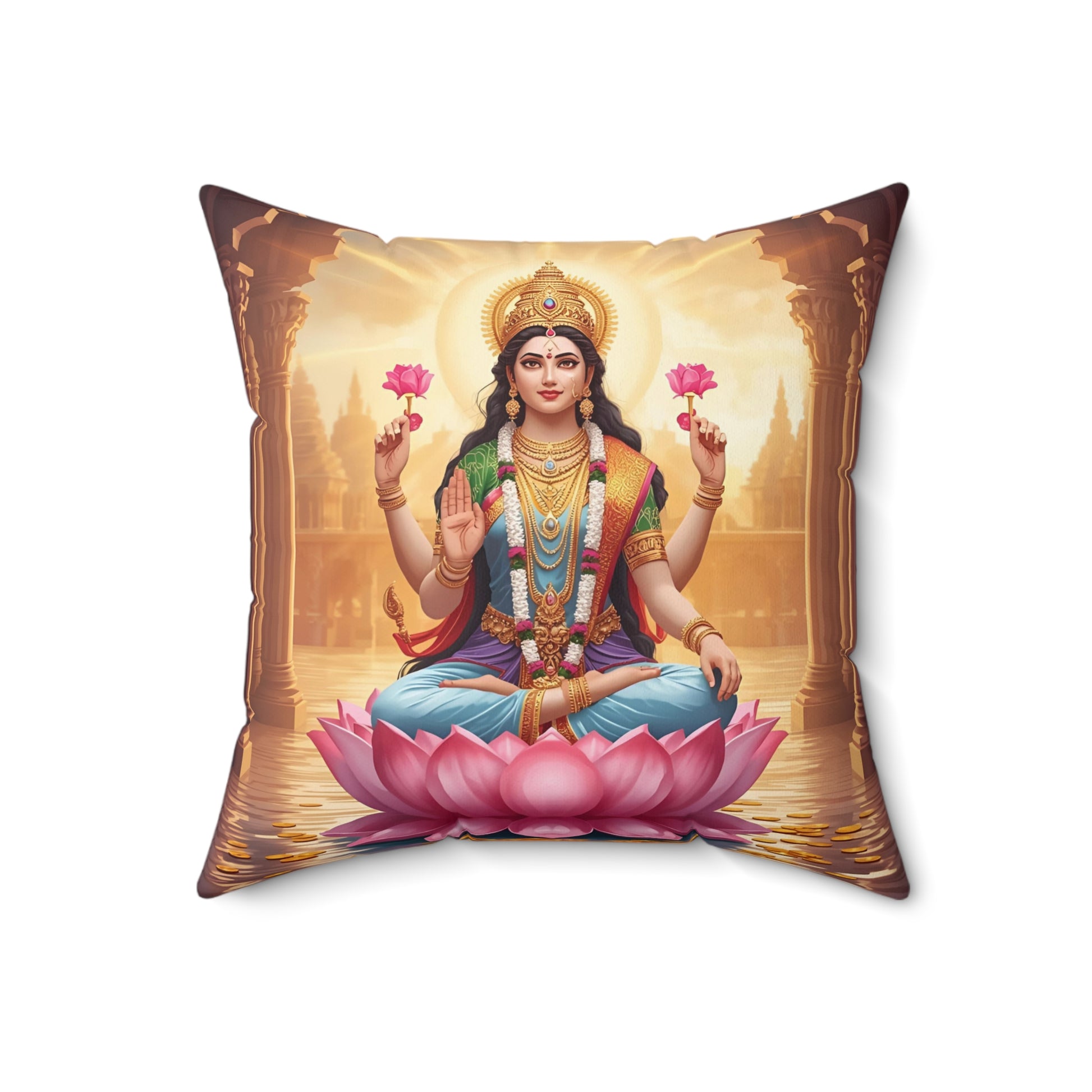 Lakshmi Decorative Pillow – Hindu Goddess of Wealth Cushion for Home & Spiritual Décor