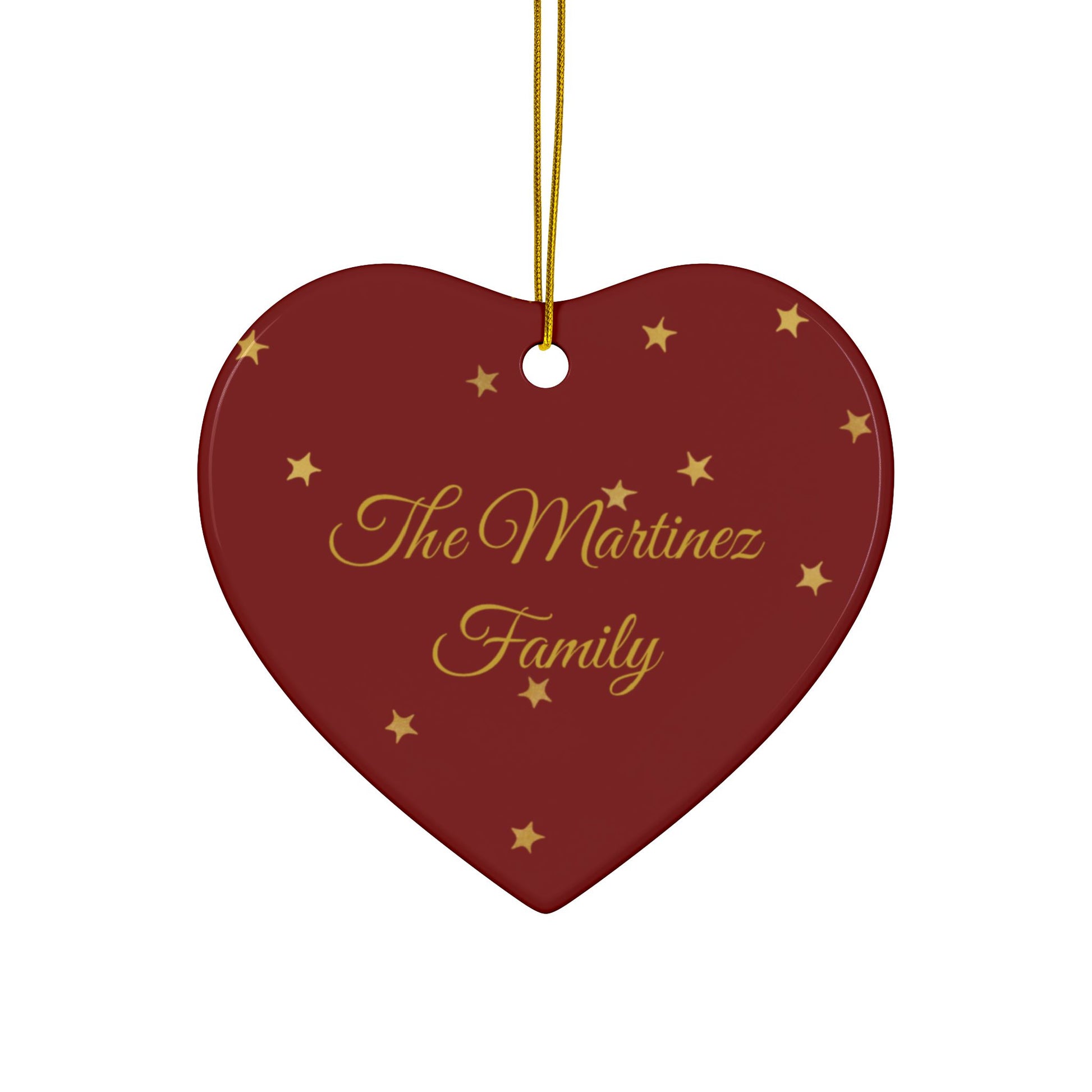 Add a magical and heartfelt touch to your holiday decor with our ceramic heart-shaped ornament. Designed with a festive red background, golden stars, and elegant script reading “Love is the Magic of Christmas” on one side, it’s the perfect keepsake for your tree or a meaningful gift for loved ones.