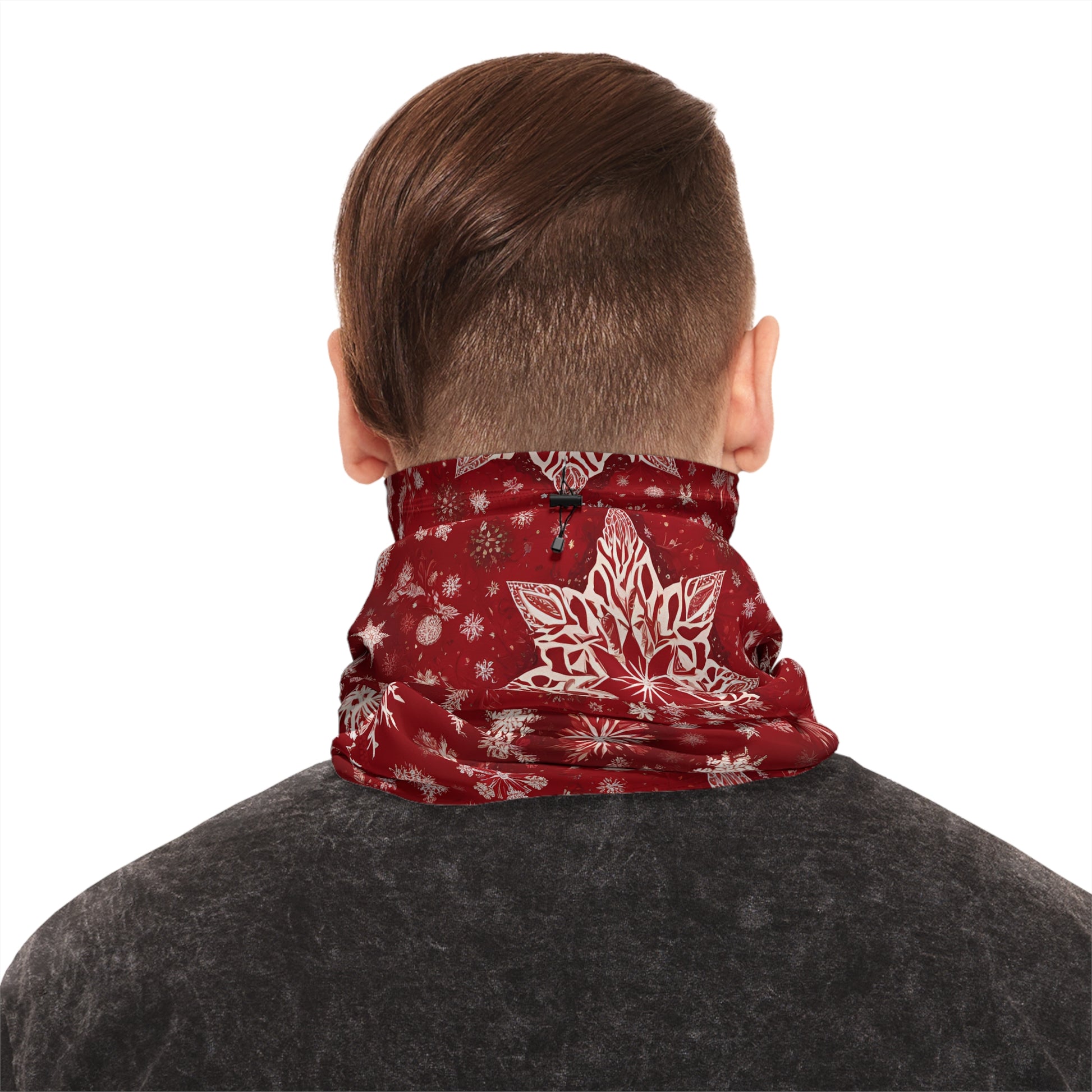 Red Snowflake Neck Gaiter – Winter Face Cover with Adjustable Drawstring