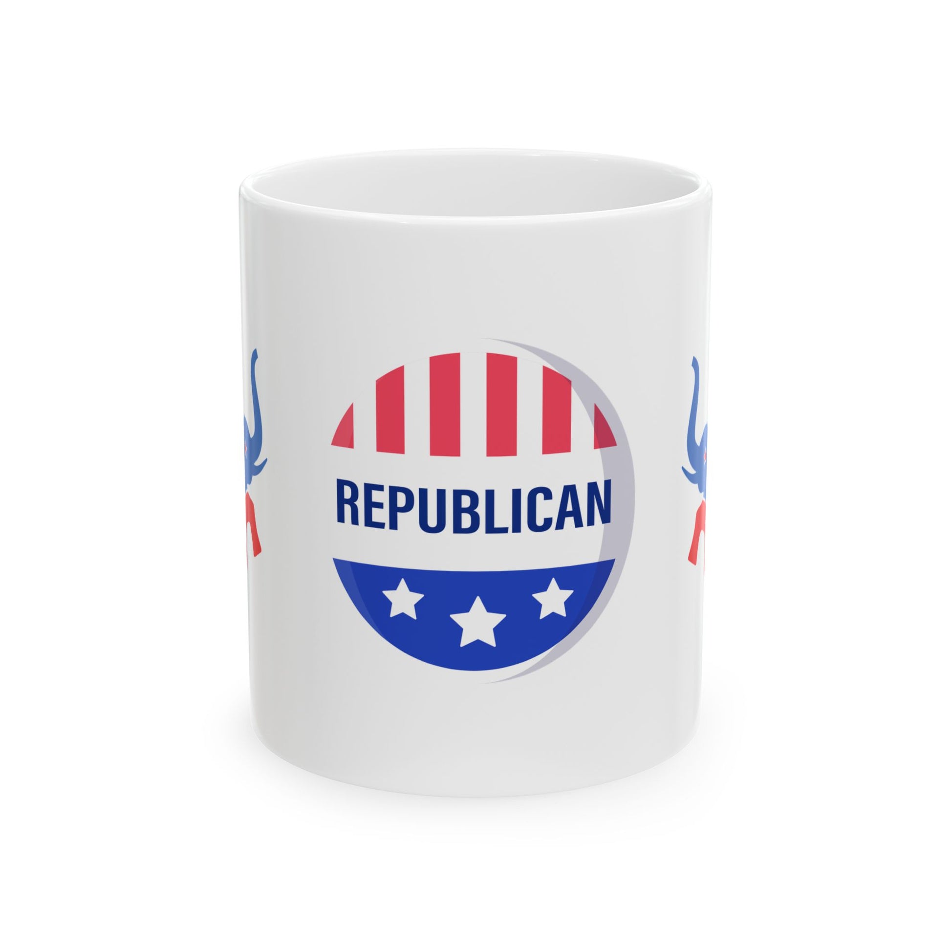 This ceramic Republican Party Mug is a bold tribute to conservative values and the American spirit. With a crisp design that features the iconic Republican elephant and a patriotic red, white, and blue badge, it’s perfect for coffee breaks, political debates, or morning news routines.