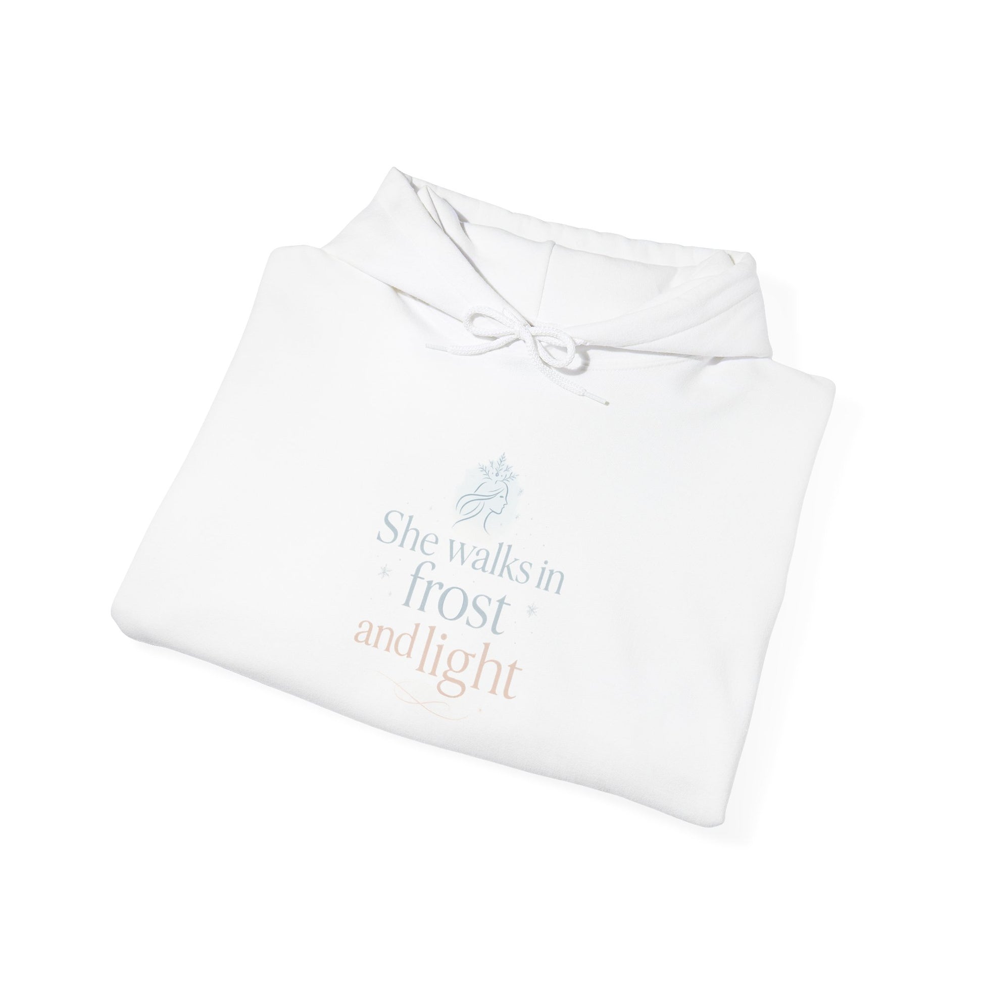 Channel the quiet power and radiance of winter with our “She Walks in Frost and Light” hoodie — a tribute to the divine feminine, nature’s magic, and the serene strength that lives within.