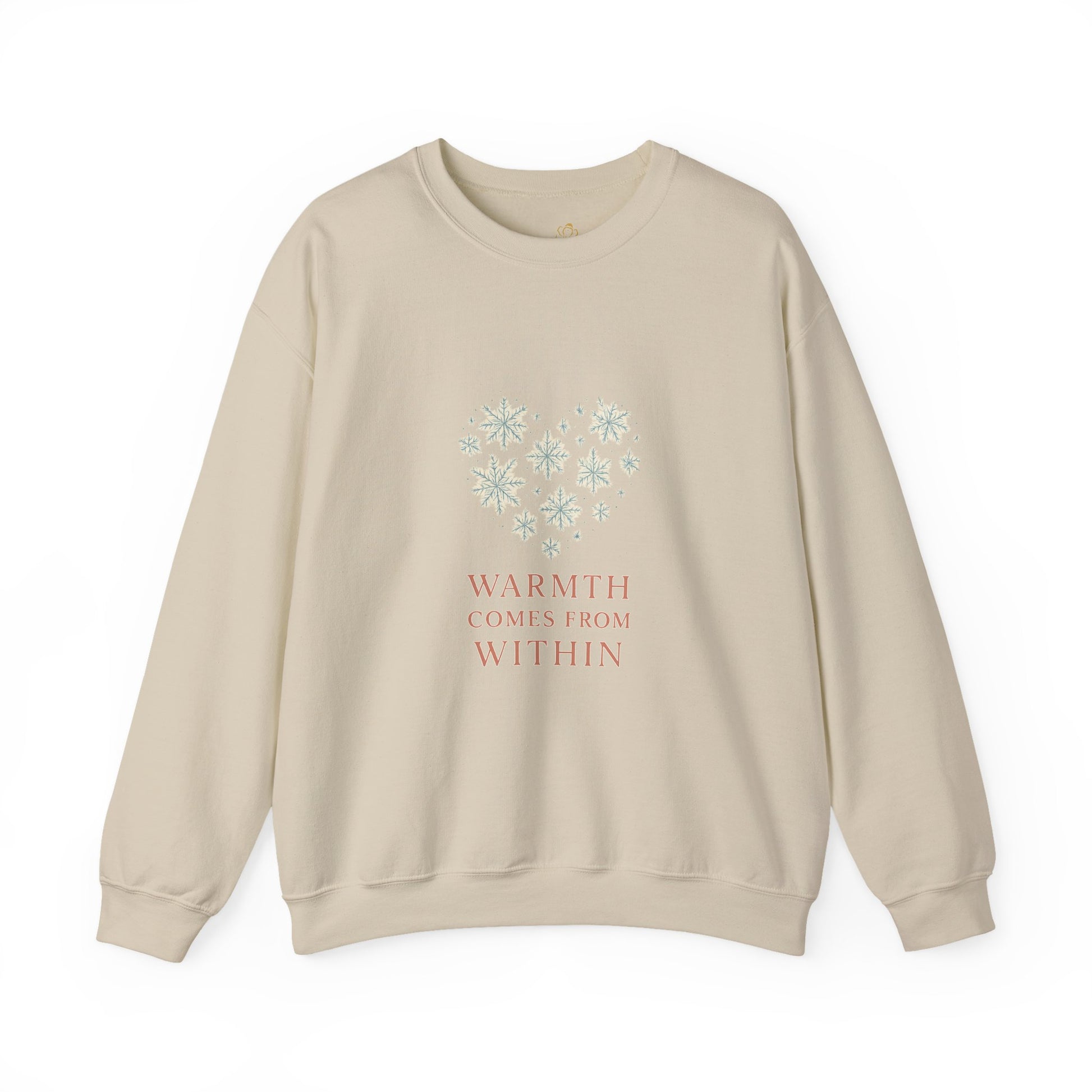 Warmth Comes From Within – Winter Affirmation Sweatshirt | Heart Snowflake Cozy Edition